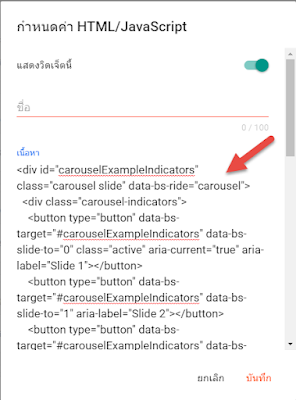 4. คัดลอกโค้ดไปวางใน วิดเจ็ต HTML/JavaScript ที่ท่านเพิ่มเข้ามา